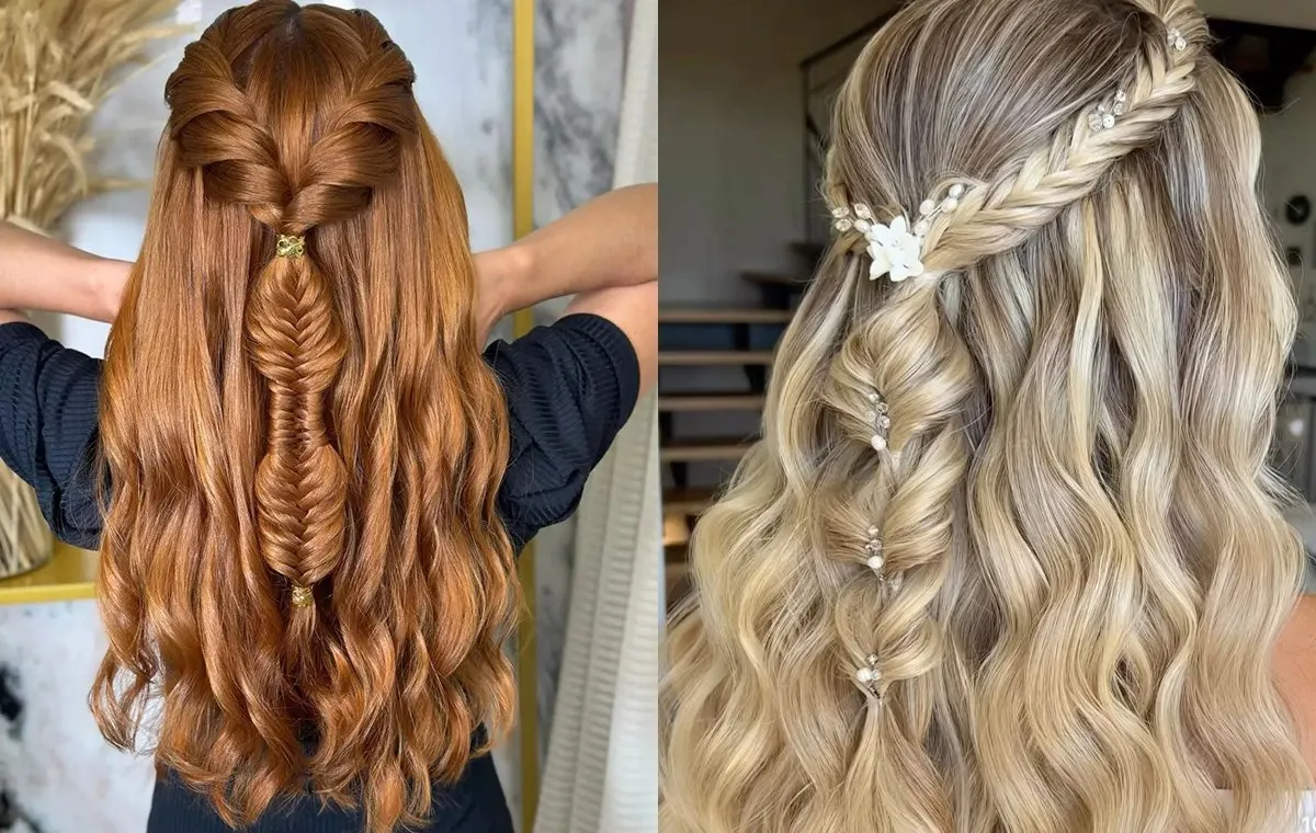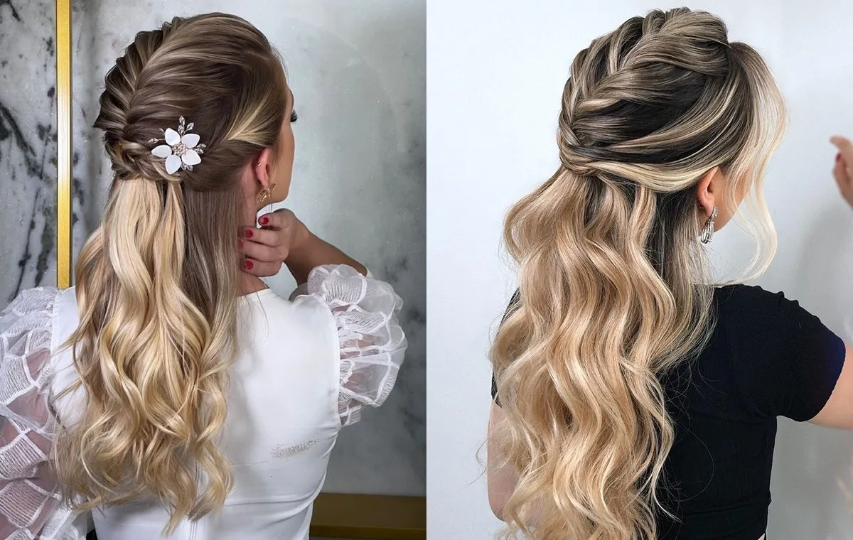 این مدل موی شیک و خاص که با بستن نیمی از موها به شکل دم اسبی در بالای سر و رها کردن نیمی دیگر از موهای موجدار در پشت سر به دست میآید، مدل موی ایدئالی برای مهمانیهای تابستانی است. قسمت جذاب این مدل مو، بخشهایی از مو هستند که اطراف صورت آویزان میمانند. شما میتوانید برای جذابتر شدن چهرهی خود، موهای جلوی سرتان را فِر کنید.