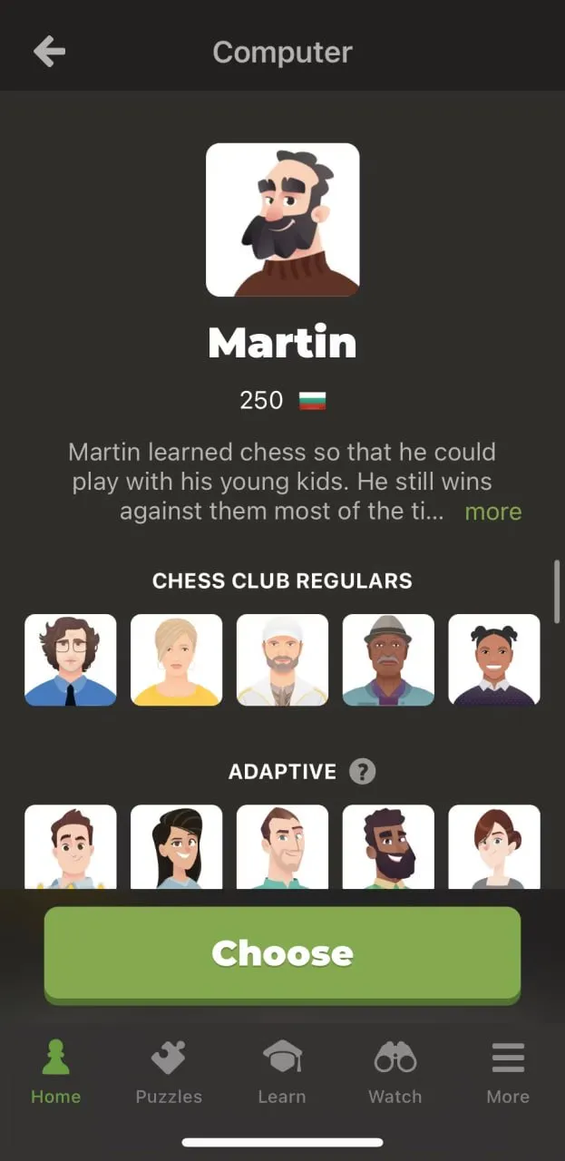 اگر سه دقیقه، ده دقیقه، سی دقیقه یا کل روز را وقت داشته باشید در این برنامه بازیهایی پیدا میشوند که در برنامه روزمرهٔ شما جای بگیرند. Chess.com ویژگیهای دیگری دارد از جمله باتهای هوش مصنوعی که هر کدام مهارتهای به خصوصی دارند. این باتها بهصورت آفلاین در دسترس هستند و شما میتوانید بدون نیاز به اینترنت با آنها بازی کنید.
