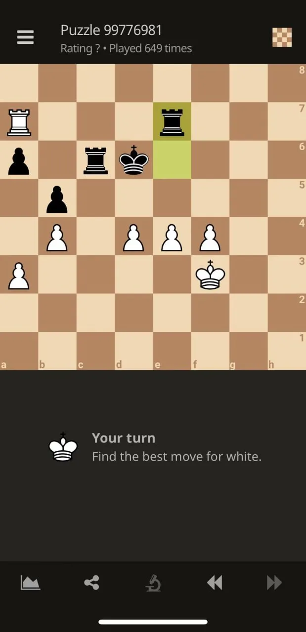 Lichess همچنین پازلهایی بر اساس میانهٔ بازی، آخر بازی، آخر بازی رخ، آخر بازی پیاده و موارد دیگر در اختیار بازیکنان قرار میدهد. این ویژگیها Lichess را گزینهٔ برتر برای پازلهای شطرنج تبدیل میکند.