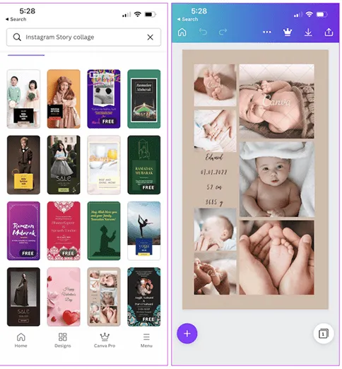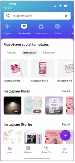 Canva یک برنامه ویرایشگر گرافیکی محبوب در بین کاربران است. این اپلیکیشن ترکیبی جذاب و خاص از الگوها و قالبها را برای استوریهای اینستاگرام ارائه میدهد. بهترین بخش برنامه این است که اکثر قالبها نیازی به پرداخت هزینه از طرف کاربر ندارند. در عین حال، برنامه رابط کاربری سادهای دارد که باعث میشود به راحتی و آسانی از آن استفاده کنید و در عین حال از آن لذت ببرید.