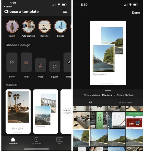 این اپلیکیشن ترکیبی از هر دو قالب رایگان و پولی دارد. با این حال در مقایسه با نمونههای بالا، تعداد قالبهای رایگان آن بیشتر است و این یک مزیت بزرگ برای کسانی است که به صورت روزانه در صفحه اینستاگرام خود استوری میگذارند. خوشبختانه در این اپلیکیشن تعداد زیادی قالب خاص وجود دارد که از همهی آنها میتوانید برای زیباتر شدن استوریهایتان استفاده کنید.