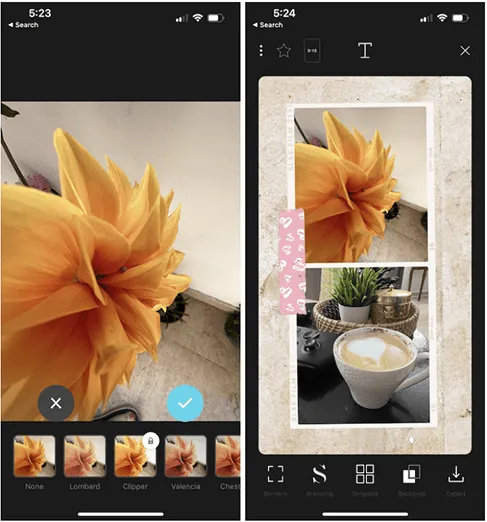 همانطور که قبلا ذکر شد، قابها شیک هستند ولی تعداد محدودی عکس را میتوانید در آنها قرار دهید. این اپلیکیشن همچنین مجموعهای جالب از پسزمینهها و فیلترها را برای جذاب کردن استوری به شما ارائه میدهد. علاوه بر چند نمونهی رایگان، تعداد زیادی قالب پولی هم در آن وجود دارد. بنابراین اگر دوست دارید از آنها استفاده کنید، میتوانید اکانت خود را به نسخه پولی ارتقا دهید. با این حال من پیشنهاد میکنم که ابتدا از نسخه رایگان آن استفاده کنید و در صورتی که نیاز بود، نسخه پولی آن را خریداری نمایید.