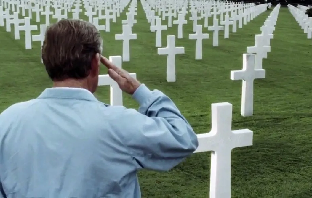 استیون اسپیلبرگ در فیلم «نجات سرباز رایان» به قدری در به تصویر کشیدن لحظات وحشتناک جنگ قدرتمند عمل کرده است که بیشتر تماشاگران به کل ابتدای فیلم را فراموش میکنند و تا انتها که دوباره به آن اشاره میشود، آن را به یاد نمیآورند. مخاطبها که مدت زمان زیادی را در هرج و مرج جنگ جهانی دوم فیلم میگذراند، پیام غمانگیز و دردناک ابتدای فیلم را فراموش میکنند و وقتی در پایان فیلم، دوباره با تصویر ابتدای فیلم روبرو میشوند، پیام دردناک فیلم که حالا بخاطر روند داستان عمق پیدا کرده، در ذهن مخاطب خود مینشیند. موضوع فیلم این نیست که آیا سرباز رایان زنده میماند یا نه؛ چون در همان ابتدا فیلم خیال ما را از این موضوع راحت میکند. بلکه موضوع در مورد فداکاریهای تمام شخصیتهای دیگر و پیامدهای جنگ است. نشان دادن تصویر سرباز رایان مسن یکبار در ابتدا و یکبار در انتها درحالی که روبروی قبرستان ایستاده است، نشان بر این است که برملا کردن پایان داستان در ابتدای فیلم نهتنها چیزی را لو نداده، بلکه عمقی به داستان اضافه میکند که به هیچ شکل دیگری نمیتوانست امکان پذیر باشد.