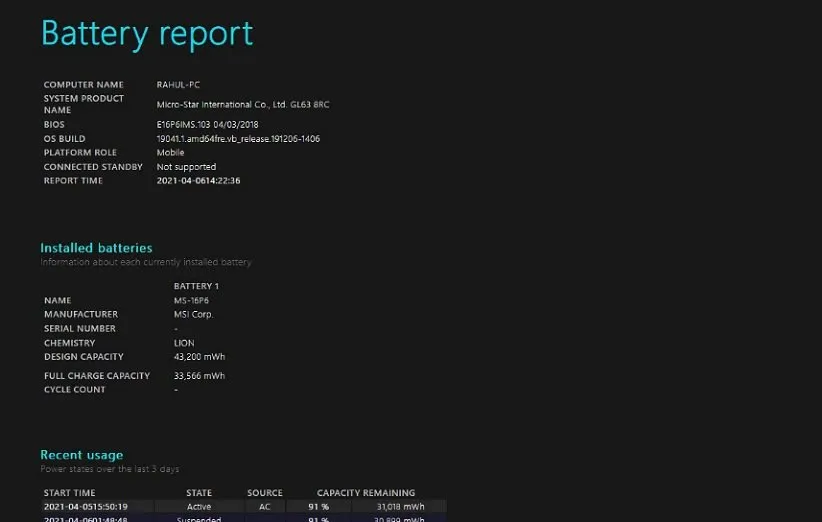 1. دستور Powercfg برای دریافت گزارش از سلامت باتری لپتاپ