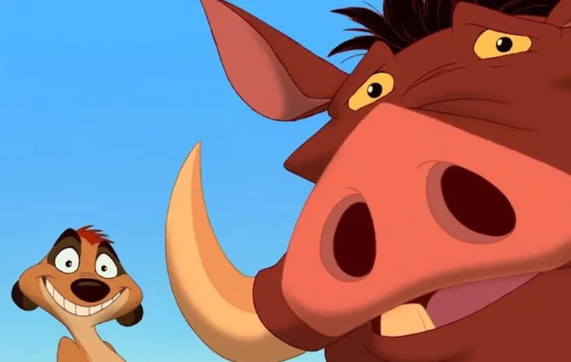 تیمون و پومبا هر دو از دار و دسته ی هم نوعان خودشان طرد میشوند اما خوشبختانه همدیگر را پیدا میکنند. آنها در کنار هم زندگی راحتی دارند و «فلسفهی بدون مشکل بودن» را با گونه های ناجور دیگری از جمله سیمبا به اشتراک میگذارند. تیمون و پومبا به روش خاص خودشان خندهدار هستند و صمیمیتشان با حیوانات بی خانوادهی دیگر، آنها را به موجودات لذتبخشی تبدیل میکند.