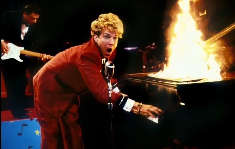 9. دنیس کواید در نقش جری لی لوئیس در فیلم «گلولههای بزرگ آتش» (Great Balls of Fire!)
