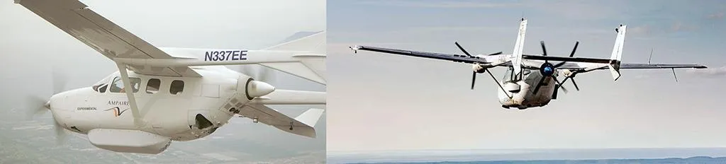 تحول پیشرانههای هیبریدی-الکتریکی وسایل نقلیهی هوایی در سال 2020 با پیشرفتهای استارتآپ «آمپر» (Ampaire) آغاز شد. این شرکت در حال آمادهسازی دومین نمونهی اولیه از هواپیمای سه نفرهی خود با نام Electric EEL است تا بتواند پروازهای آزمایشی را در مسیرهای شرکت هواپیمایی منطقهای Mokulele Airlines در هاوایی انجام دهد.