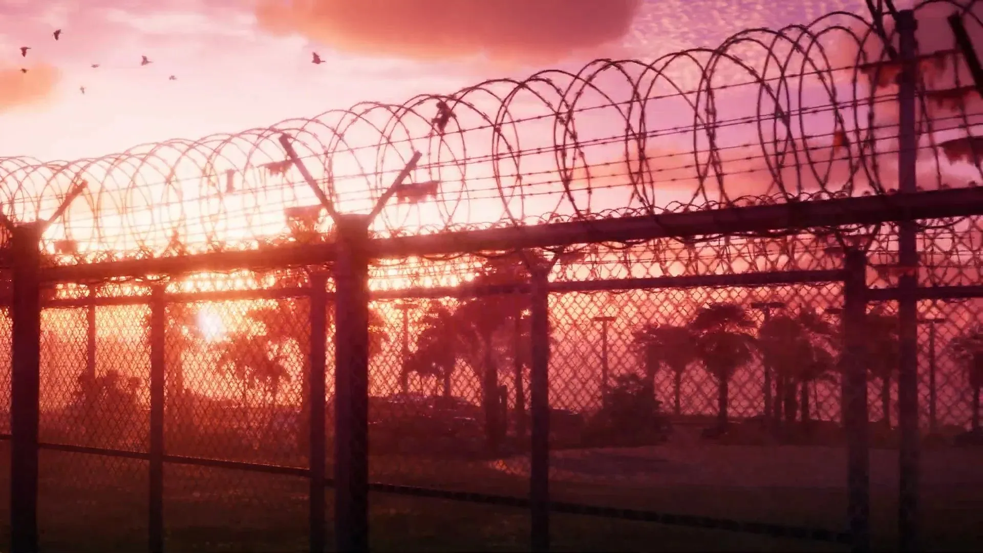 در پسزمینهی این صحنه، اولین نگاه را به خط افق وایس سیتی داریم و در حالی که در دوردست است، نشان میدهد که این شهر بزرگتر و متراکمتر از لوس سانتوس در GTA 5 است. این شاید غیرمنتظره باشد، زیرا لس آنجلس که لوس سانتوس بر اساس آن ساخته شده است، بسیار بزرگتر از میامی در زندگی واقعی است. در ادامه نگاهی هم به زندان شهر میاندازیم که با برجهای دیدهبانی و محیط حصارکشی شده قابل تشخیص است.