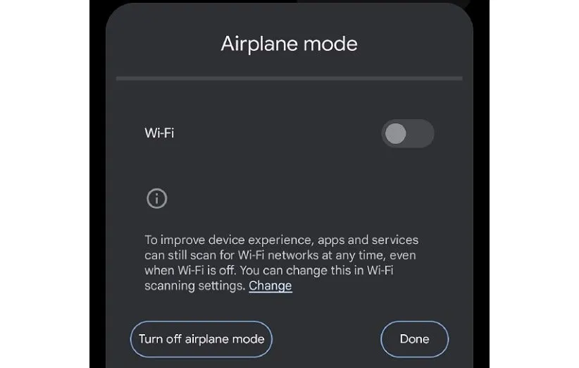میانبر گزینهی «Turn off airplane mode» ایجاد شده است.