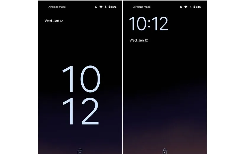 - در نسخهی دوم بتای اندروید 12L، علاوه بر اصلاح محل قرارگیری بصری ساعت قفل صفحه، یک گزینهی فعال/غیرفعالسازی قابلیت «Double-line clock» در قسمت Settings > Display > Lock screen ایجاد شده است. این گزینه برای کاربرانی که علاقهای به ساعت دو خطی بزرگ در قفل صفحه ندارند، طراحی شده تا با غیرفعالسازی آن ساعت را به گوشهی سمت چپ نمایشگر منتقل کند.