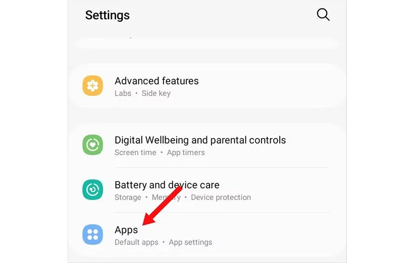 شما همچنین میتوانید از طریق بستن اجباری (Force Stop) برنامهی دوربین را در تنظیمات ریاستارت کنید. برای این کار، ابتدا Settings گوشی را باز کرده و سپس به بخش Apps بروید.