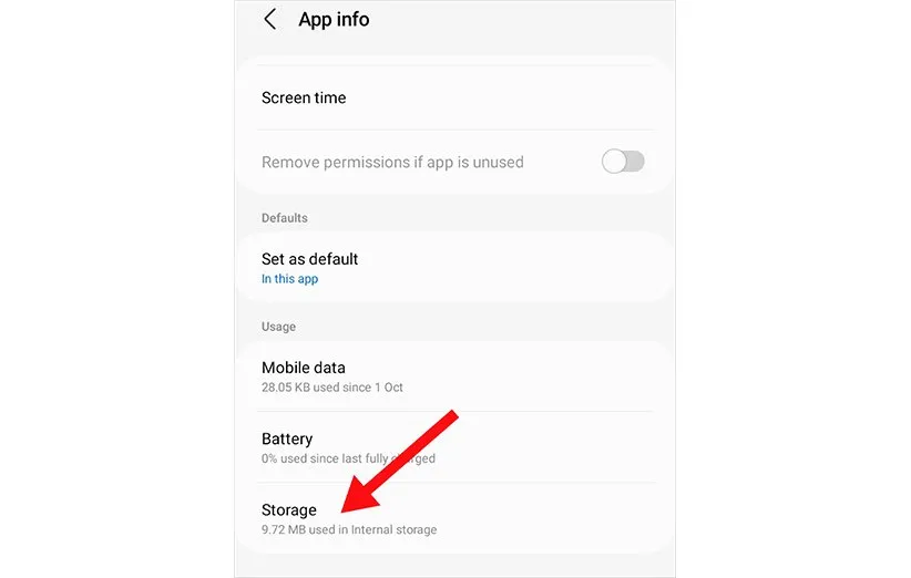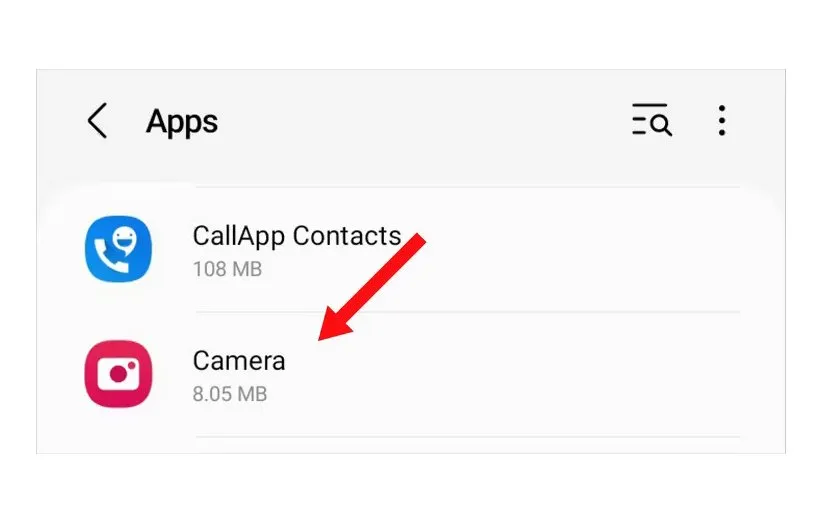 برنامه دوربین را از لیست برنامهها یافته و روی Storage ضربه بزنید.
