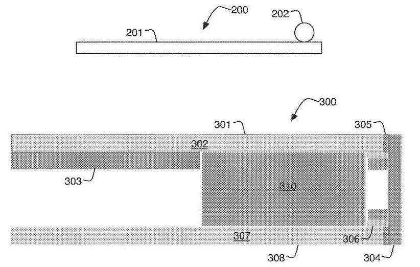 در قسمت دوم توضیحات این پتنت، اطلاعاتی نوشته شده که ما را کمی گیج میکند. این اطلاعات میگوید که بخشی از صفحهنمایش که برای شارژ مجدد اختصاص داده شده شفاف است و بنابراین در آن قسمت نمایشگری وجود ندارد. به عبارت دیگر، فضای اشغال شده توسط نقطهی شارژ بخش مربوط به نمایشگر را کاهش میدهد. مگر اینکه اپل تصمیم بگیرد تا نمایشگر هیبریدی را برای این دیوایسها انتخاب کند. همانطور که نمودارها اشاره میکنند، سیم پیچ شارژ درست زیر صفحهنمایش قرار میگیرد.