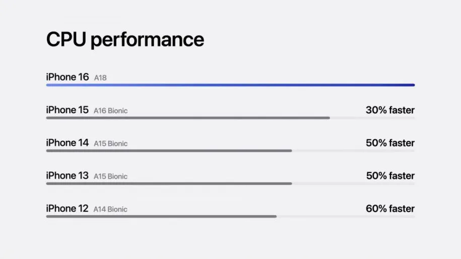 اپل ساعاتی پیش از گوشیهای سری آیفون 16 در چهار مدل استاندارد و پلاس و پرو و پرو مکس رونمایی کرد. این گوشیها به پردازندههای A18 (برای مدلهای پلاس و استاندارد) و A18 پرو (برای مدلهای پرو و پرو مکس) مجهز شدهاند که اپل ادعاهای بزرگی را دربارهی آنها مطرح کرده است. در این مطلب به بررسی این ادعاها میپردازیم.