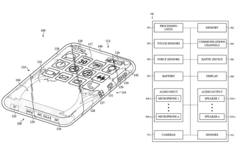 اپل در توضیحات این پتنت گفته بود: «طراحی گوشی تمام شیشه میتواند از چندین شیشه ساخته شده باشد که به هم چسبیدهاند و تداعیگر ساختاری یکپارچه هستند یا این که از ابتدا از یک تکه شیشه پرداخته شده تولید شود. این گوشی در تمامی جهات خود نمایشگر خواهد داشت که میتواند توسط فورس تاچ یا تاچ معمولی کار کند. این کار باعث میشود ما از تمامی جهات گوشی استفاده کنیم تا کارکردهای اضافی را در اختیار کاربر قرار دهیم که به کمک آن میتوان گوشی را کنترل کرد.»