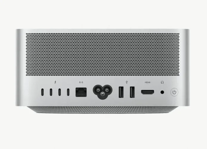 طبق گفتههای اپل مک استودیو مجهز به M2 اولترا قادر است تا 6 نمایشگر پرو دیسپلی XDR اپل را پشتیبانی کند و حالا از وایفای 6E هم برای دانلودهای سریعتر و بلوتوث 5.3 برای اتصالهای پایدارتر لوازم جانبی بهره میبرد. روی پنل پشتی آن هم شاهد تعبیهی 4 پورت تاندربولت 4، پورت اترنت با سرعت 10 گیگابیت بر ثانیه، پورت HDMI و دو پورت USB-A هستیم. در جلو هم دو پورت USB-C و یک اسلات کارت SD به چشم میخورد.