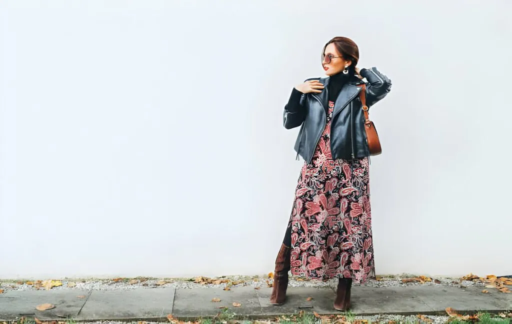پیراهنهای بلند و آزاد با دامن کلوش که طرحهای مختلفی روی آن چاپ شده است یکی از انتخابهای عالی برای داشتن این استایل است. البته اگر در فصل سرما قصد دارید از این پیراهنها استفاده کنید بهتر است آنهایی را انتخاب کنید که پارچهی ضخیمتری دارند. ترکیب این پیراهنها با یک کت، بوت، کلاه و یک کیف بزرگ بسیار زیبا میشود.
