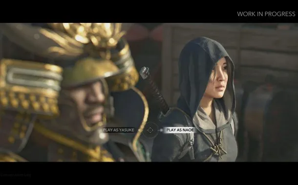 در تریلری که منتشر شده ما شاهد یک قلعه به نام Fukuchiyama هستیم. در این قلعه دو کرکتر اصلی یعنی نائوئه (Naoe) و یاسوکه (Yasuke) در حال یافتن یک دشمن هستند. این تریلر نشان میدهد که ارتباط میان دو کرکتر اصلی چگونه است و این دو شخصیت یکدیگر را به چه حالت کامل میکنند. هر دو کرکتر ویژگی خاص خود را برای مبارزه داشته که آن را برای سبک خاصی از بازی مناسب میکند. با پیشرفت در بای کاربران میتوانند به صورت کاملاً آزادانه میان این دو کرکتر جابجا شده و از ویژگیهای خاص هر کدام در مراحل خاص استفاده کنند.