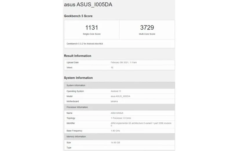 ایسوس راگفون ۵ با رم ۱۶ گیگابایتی در گیکبنچ دیده شد