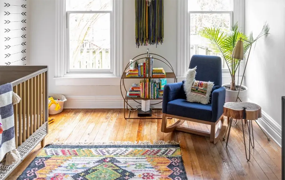 پهن کردن فرش و قالیچه به اتاق نوزاد نه تنها برای ترکیب رنگ، طرح و شخصیت بخشیدن به اتاق مناسب است، بلکه به کاهش سروصدا هم کمک میکند. قالیچهای را نزدیک تختخواب نوزاد پهن کنید تا هنگام بررسی وضعیت نوزاد صدای پاهایتان او را از خواب بیدار نکند.
