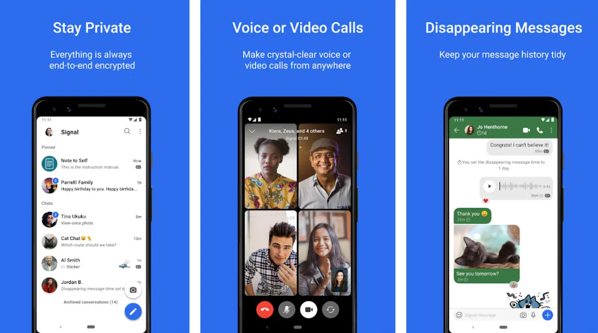 اگرچه این برنامه رقیب مستقیم اسکایپ نیست، اما به کاربران امکان میدهد تا پیوندهایی را برای تماسها به اشتراک بگذارند و میتوانند به جای ساخت گروه، درست مانند گوگل میت، تیمز و زوم، پیوند را به سادگی برای دیگران ارسال کنند. علاوه بر اینکه استفاده از سیگنال رایگان است.