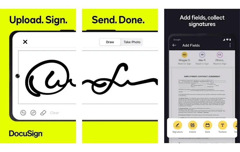برنامه DocuSign به طور گسترده برای مدیریت فایلهای PDF کارایی دارد. از این برنامه میتوان برای امضای سند و به اشتراکگذاری اسناد استفاده کرد. این نرمافزار انطباق با قانون eSign را تضمین کرده و به شما اطمینان میدهد که اسناد امضا شدهی الکترونیکی کاملا دارای اعتبار قانونی هستند. علاوه بر این موضوع، برنامهی مذکور به شما امکان میدهد اسناد فاقد امضا را برای گیرندگان ارسال کرده و آنها میتوانند امضای الکترونیکی خود را به سند اضافه کنند. DocuSign از انواع و اقسام فرمتهای مختلف مثل PDF، Word، اکسل و برخی از تصاویر پشتیبانی میکند. همچنین، گزینههای حق اشتراک مختلفی برای تهیه موجود است که متناسب با نیازهای کاربرها میتوان اشتراک با قیمت مناسب را پیدا کرد.