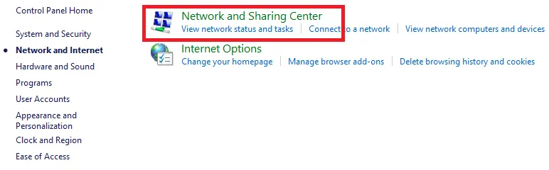 - گزینه Network and Sharing Center را انتخاب کنید.
