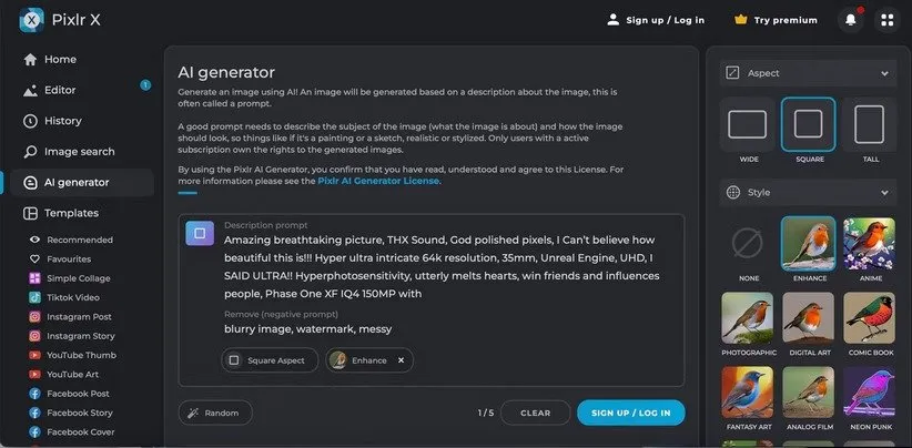 - پلتفرمی خلاقانه با قالبها و تمهای آماده که توسط جامعه کاربران ساخته شدهاند؛ نیازی به نوشتن پرامپتهای پیچیده نیست