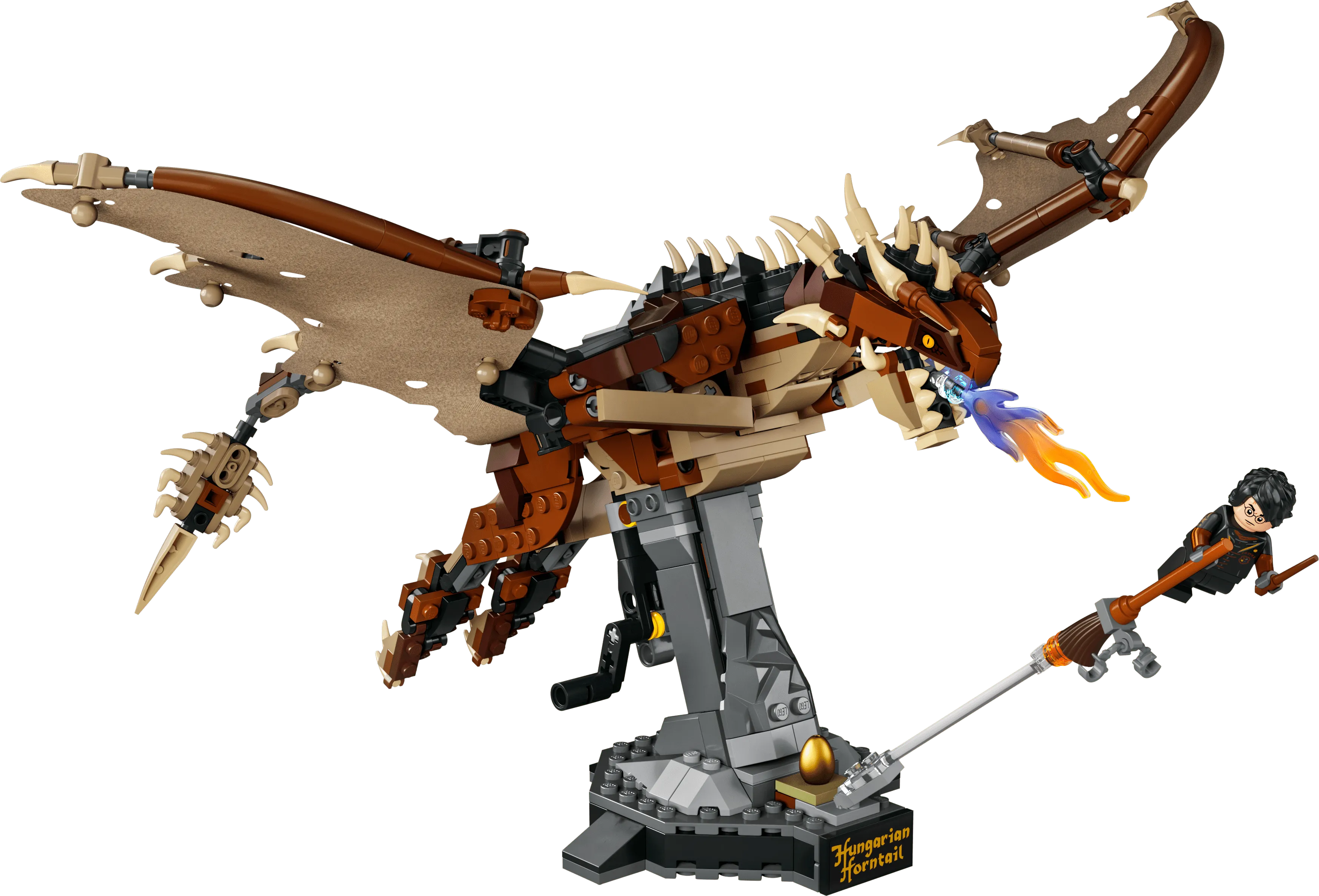 این لگو که بر اساس مجموعهی هری پاتر و البته اژدهای گفتهشده ساخته شده است، دارای بالهای متحرکی برای این اژدها است که با کمک یک اهرم میتوانند به بالا و پایین بچرخند، همچنین طول بالهای مفصلی این اژدهای مهیب به بیش از 15 اینچ (40 سانتیمتر) کشیده میشود و همین باعث میشود که LEGO® Harry Potter™ – Hungarian Horntail Dragon که در کنار این اژدها یک مینی فیگور هری پاتر سوار بر چوب جادویی خود را هم به همراه دارد، به یک مجموعه کلکسیونی قابلتوجه برای ساخت تبدیل شود.