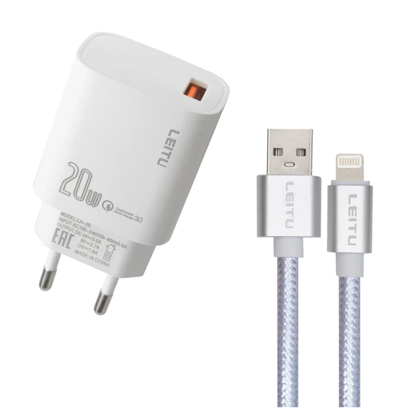 مدل LH-25 20W به همراه کابل تبدیل لایتنینگ؛ یکی از بهترین شارژرهای لیتو برای گوشیهای آیفون