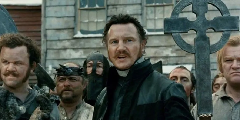 همین سکانس ابتدایی هیجانانگیز، زمینه را برای ساخت حماسهای خشونتآمیز فراهم میکند و بازی زیبا و منحصربهفرد نیسون، یک چهره به یاد ماندنی از پریست میسازد. او در تمام فیلم به عنوان یکی از معدود مردانی به یاد آورده میشود که آن قدر رشادت داشت که در مقابل بیل بایستد، حتی بااینکه به قیمت جانش تمام شد. همین چیزها باعث میشود که آمستردام در طول فیلم نتواند صحنه دلخراش کشته شدن پدرش به دست بیل را حتی برای لحظهای فراموش کند.