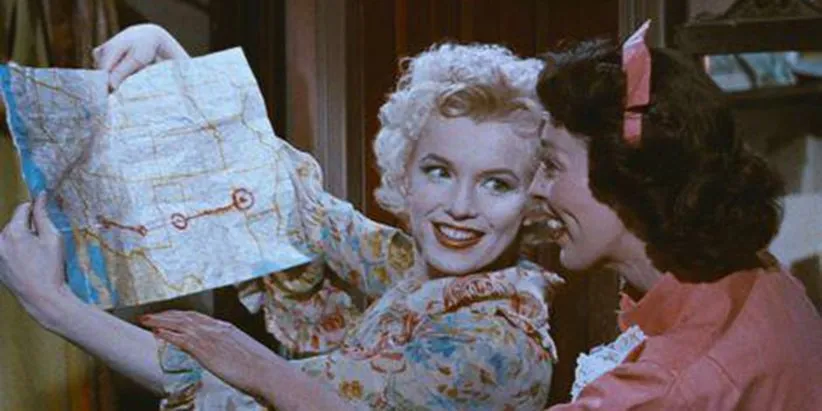 شاید هیچ دو نفری جذابتر از ترکیب مونرو و جین راسل نباشد؛ که در اقتباس دلچسب هاوارد هاکس از نمایش کلاسیک برادوی آنیتا لوس، با هم جفت شدند. «آقایان موطلاییها را ترجیح میدهند» داستان دو دختر رقصنده است که عازم پاریس میشوند، جایی که مونرو قرار است با یک میلیونر جوان (تامی نونان) ازدواج کند. در راه، آنها با یک کارآگاه خصوصی (الیوت رید) برخورد میکنند که استخدام شده است تا ببیند آیا مونرو فقط به دنبال پول آن جوان است یا خیر. در همین حال، راسل با یک تاجر الماس ثروتمند (چارلز کابرن) گرم میگیرد. این فیلم بیشتر به خاطر ترانهی معروف مونرو، «الماسها بهترین دوست یک دختر است»، که در آن توضیح میدهد چرا پیدا کردن یک مرد ثروتمند مهم است، شناخته میشود.
