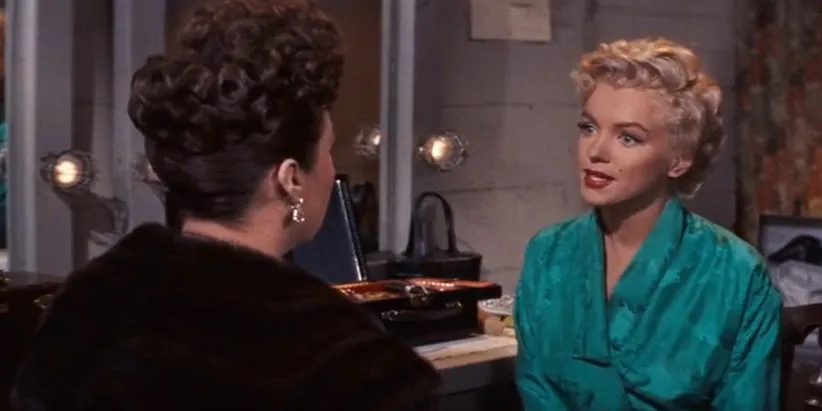داستان فیلم دربارهی یک هنرپیشهی آیندهدار به نام ایو هرینگتون (آن باکستر) است که راه خود را به حلقهی دوستان ستارهی سالخوردهی برادوی، مارگو چانینگ (دیویس)، باز میکند، به این امید که بتواند به قلهی شهرت صعود کند. مونرو در یک مهمانی که در خانهی مارگو برپا شده بود در نقش همراه یک منتقد درام به نام ادیسون دیویت (جورج سندرز) ظاهر میشود. وقتی دیویت او را ترغیب میکند که با تهیهکنندهی برجستهای (گرگوری راتوف) گرم بگیرد، او در دیالوگ معروفی میگوید: «چرا آنها همیشه شبیه خرگوشهای ناراضی به نظر میرسند؟»
