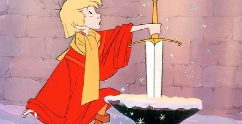آرتور در کنار عدهای خلافکار خردهپا زندگی پردردسری را میگذراند تا اینکه موفق میشد شمشیر افسانهای اکسکالیبور را از سنگ بیرون بکشد و حقانیتش را ثابت کند و بهعنوان وارث بر حق تاج و تخت شناخته شود. او در نهایت رهبری ارتشی را علیه پادشاه قلابی به عهده میگرفت و تخت پادشاهی را به دست میآورد.
