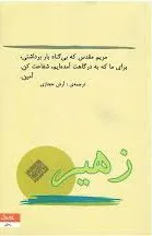نام زهیر در عربی به معنای درخشان، تابناک و چیزی است که نمیتوان حضور آن را نادیده گرفت. راوی این کتاب، رماننویسی مشهور در فرانسه است که همسرش، استر، بهعنوان خبرنگار جنگی به سفر رفته و ناپدید شده است. در این سفر، استر با یک همکار همراه بوده است و راوی داستان نمیداند همسرش به قتل رسیده یا همراه همکارش او را بیهیچ دلیل و اطلاعی ترک کرده است. شاید عنوان «زهیر» به همین دلیل به این کتاب اطلاق شده است. پردهای از پیش چشم راوی کنار رفته و او دیگر نمیتواند این جنبهی جدید از زندگی و رابطهی ده سالهای که در ذهن داشته را انکار کند. راوی برای پیدا کردن همسرش و سوالاتی که باید به آنها پاسخ بدهد، راهی سفر میشود. از اروپا تا آسیای مرکزی را طی میکند و همانطور که تصور میکنید، این کتاب نیز روایتی از یک سفر است.