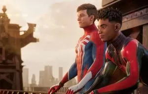 بازی اسپایدرمن 2 بازیکنان را در نقش پیتر پارکر (Peter Parker) و مایلز مورالز (Miles Morales) برای دنبالهای جذاب باز به نیویورک میگرداند و مرزهای بازیهای ابرقهرمانی را جابجا میکند. پس از موفقیت بازی اسپایدرمن 1 ساخت سال ۲۰۱۸ و بازی مستقل مایلز مورالز، این بازی تجربه را با داستانی غنیتر، دنیایی گستردهتر و مکانیکهای پیشرفتهی گیمپلی که طرفداران را مجذوب خود میکند، بهبود میدهد. این بازی مملو از اکشنهای شدید، لحظات احساسی و برخی از معروفترین شرورهای سرکش مجموعهی اسپایدرمن است. محور داستان پیتر و مایلز هستند که زندگی خود را به عنوان محافظان نیویورک میگذرانند که ناگهان با یک تهدید مرگبار جدید یعنی سیمبیوتی بیگانه با نام ونوم (Venom) روبرو میشوند. این بازی به طرز ماهرانهای داستانهای شخصی را با نبردهای بزرگتر از زندگی در هم میبافد و به بازیکنان روایتی میدهد که مضامین دوستی، مسئولیتپذیری و فداکاری را بررسی میکند. گنجاندن ونوم لحن تیرهتر و بالغتری را به بازی میآورد و در حالی که پروتاگونیستها را به محدودیتهایشان میرساند، تنش محسوسی نیز ایجاد میکند. در این بازی، نقشهی این شهر حتی گستردهتر است و از جمله مناطق جدیدی مانند کویینز (Queens) و بروکلین (Brooklyn) به آن اضافه شدهاند. این مناطق مملو از فرصتهایی برای اکتشاف، ماموریتهای جانبی و رازهایی پنهان است که باعث میشود این دنیا بیش از هر زمان دیگری زنده و متراکم باشد. به لطف مکانیکهای ارتقا یافتهی پیمایش، جابهجایی در این کلانشهر وسیع راحتتر و سریعتر شده است. افزودن بالهای پرواز به بازیکنان اجازه میدهد تا بین آسمانخراشها بپرند.