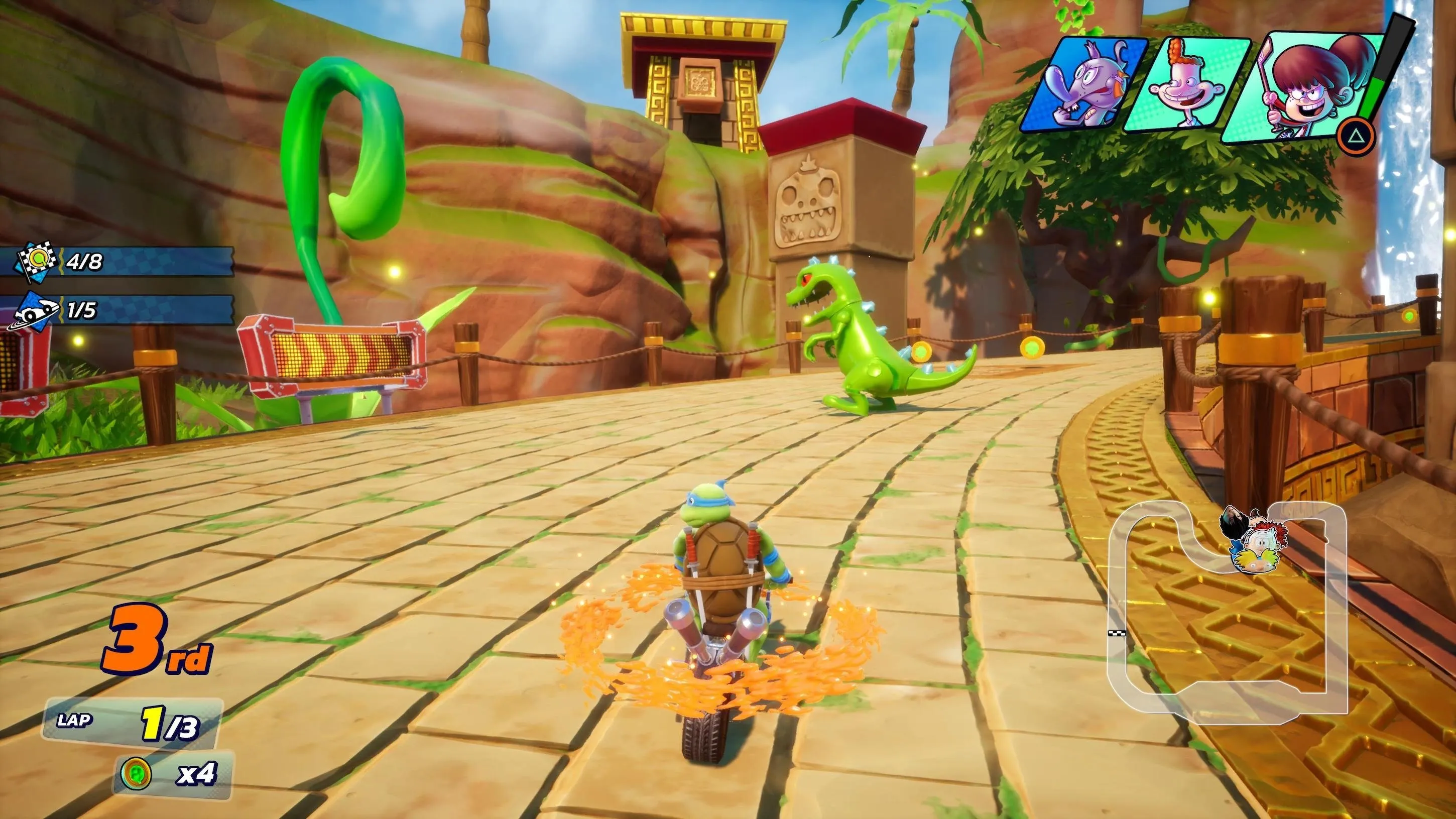 فرض کنید قصد داشتید که ببینند چه کسی در مسابقهای بین لاکپشتهای نینجا و باب اسفنجی برنده میشود. در این صورت، باید به Nickelodeon Kart Racers روی میآوردید. این بازی به طرفداران این امکان را داد تا رویاهای دوران کودکی خود را در مورد رقابت شخصیتهای محبوب با یکدیگر در یک مسابقهی سرگرمکننده زنده کنند. در حالی که شخصیتها قابل توجه و متنوع هستند، گیمپلی بازی چیز زیادی برای گفتن ندارد. بازی با کنترلهای مشکل دار، طراحیهای سادهی مسیرها و گرافیکی نه چندان عالی دست و پنجه نرم میکند. بدتر از آن، این بازی حتی به اندازهی کافی از شخصیتهای بازیهای دیگر خود استفاده نمیکند و شخصیت Invader Zim و غیره را کنار گذاشته است. با این حال، اگر بازیکنان پلتفرمی از نینتندو را نداشته باشند و یک بازی مسابقهای کارتینگ با شخصیتهای آشنا را ترجیح دهند، این اثر گزینهی بدی نیست. این بازی در نهایت به عنوان یک پله برای بهبود بازیهای آیندهی این سری عمل کرد که بهتر هم شدند و این سری بازی در طول زمان بهتر شد و بازیکنان میتوانند نسخهی دوم آن را نیز تجربه کنند که با نام Nickelodeon Kart Racers 2 هم از نظر تعداد شخصیتها و هم پیستها تنوع بیشتری دارد.
