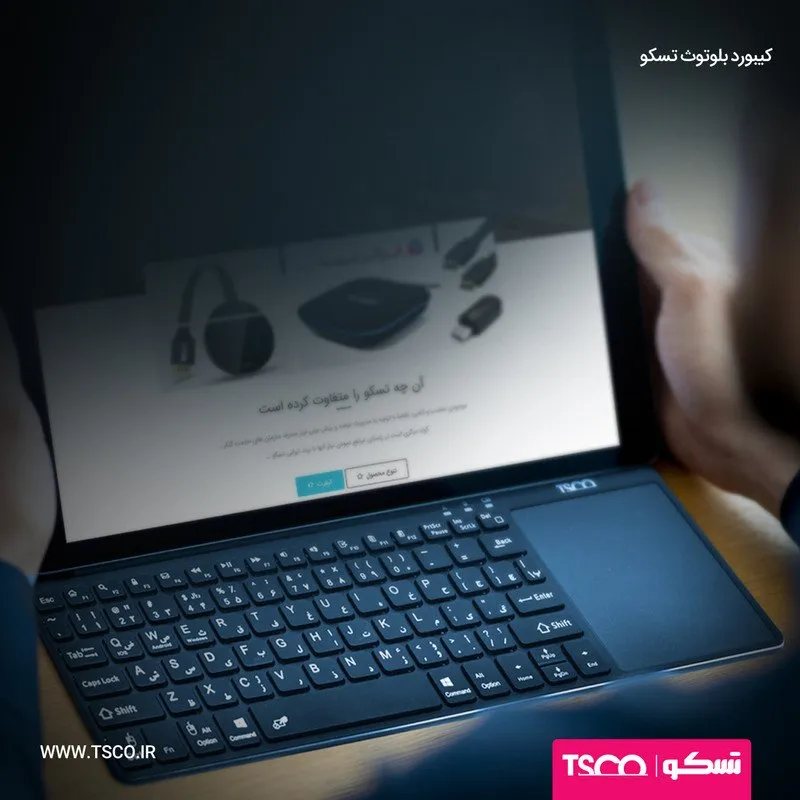 کیبورد مدل TK 7003w، محصول باکیفیت دیگر از برند تسکو است که توانسته با قابلیتهای خوبش رضایت 80 درصد از خریدارانش را به خود جلب کند. این محصول ابعاد بسیار جموجوری دارد و وزن سبک آن نیز موجب شده تا کاربران برای حملونقل آن مشکلی نداشته باشند. دو باتری نیم قلمی وظیفهی تأمین انرژی این کیبورد بیسیم را برعهده دارد و از دانگل USB نیز برای متصل شدن به دستگاههای هوشمند شما بهره میبرد.