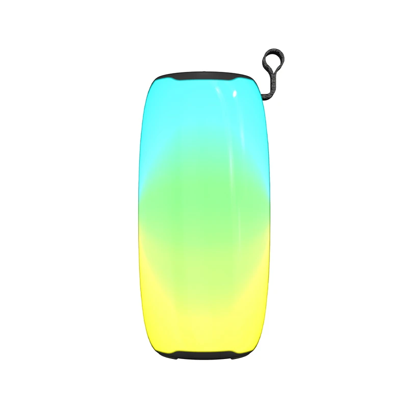 جادوی B41 از همان نگاه اول آغاز میشود. بدنهای خوشساخت از ترکیب پلاستیک مقاوم ABS و پارچهای شیک، نه تنها ظاهری مدرن و امروزی به آن بخشیده، بلکه دوام و ماندگاریاش را نیز تضمین میکند. اما اوج هنرنمایی بصری این اسپیکر، نورپردازی خیرهکننده RGB آن است؛ رقص نورهایی که با ریتم موسیقی شما هماهنگ میشوند و فضایی زنده، پرانرژی و سرشار از هیجان میآفرینند. با ابعاد جمعوجور (12.8 × 9.6 × 9.6 سانتیمتر) و وزن پر مانند 270 گرمی، B41 به راحتی در دست، کیف یا کولهپشتی شما جای گرفته و به معنای واقعی کلمه، همراه همیشگی شما در خانه، سفر، پیکنیک یا مهمانیهای دوستانه خواهد بود.