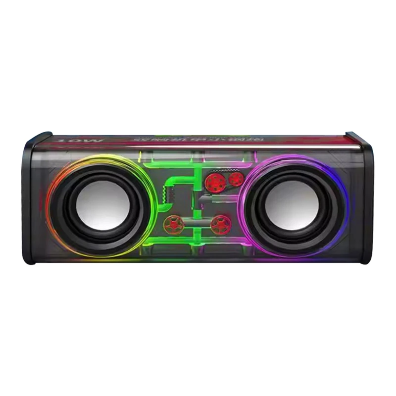 قلب تپندهی این اسپیکر، ترکیبی قدرتمند از 2 بلندگوی اصلی و 3 سابووفر مجزا است؛ آرایشی کمنظیر که نویدبخش بیس عمیق، کوبنده و صدایی فوقالعاده قدرتمند با توان خروجی 13.6 وات است. این قدرت صوتی با رقص نورهای متنوع و چشمنواز همراه شده که جذابیت بصری K-S165 را دوچندان کرده و هر محیطی را غرق در نور و موسیقی میکند. تصور کنید، یک اسپیکر با ظاهر شفاف و خاص که همزمان با پخش موسیقی، نمایشی از نورهای پویا ارائه میدهد – K-S165 دقیقاً همین تجربه را برای شما تداعی خواهد کرد.