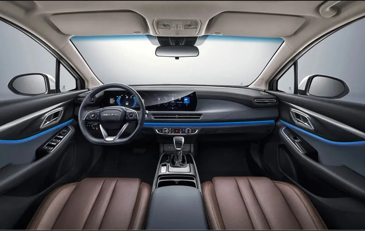 هنگام ورود به کابین U5 پلاس، با فضایی مدرن و فناورانه روبرو میشویم. نقطه کانونی داشبورد، نمایشگر لمسی بزرگ سیستم اطلاعات و سرگرمی است که در کنار صفحه کیلومترشمار دیجیتالی، حسی از تکنولوژی را به سرنشینان منتقل میکند.