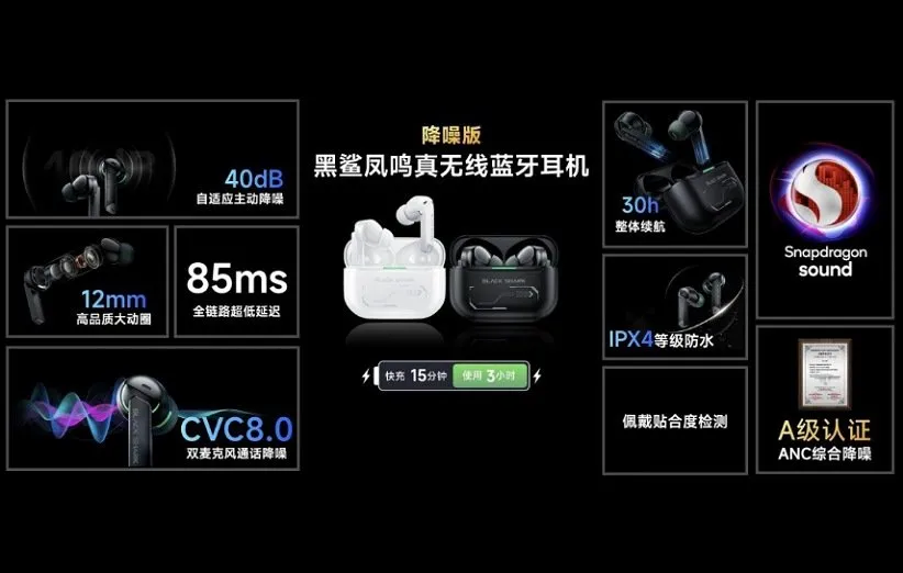 این شرکت همچنین در کنار این سری از گوشیهای گیمینگ، از یک سری اکسسوری نیز رونمایی کرده که شامل هدفون بیسیم بلک شارک بادز، شارژهای با پشتیبانی از فناوری GaN، کیس محافظ و فن خنککننده میشود. در نهایت باید اشاره کنیم که هدفون بیسیم بلک شارک بادز از درایورهای 12 میلیمتری و قابلیت نویز کنسلینگ بهره میبرد.