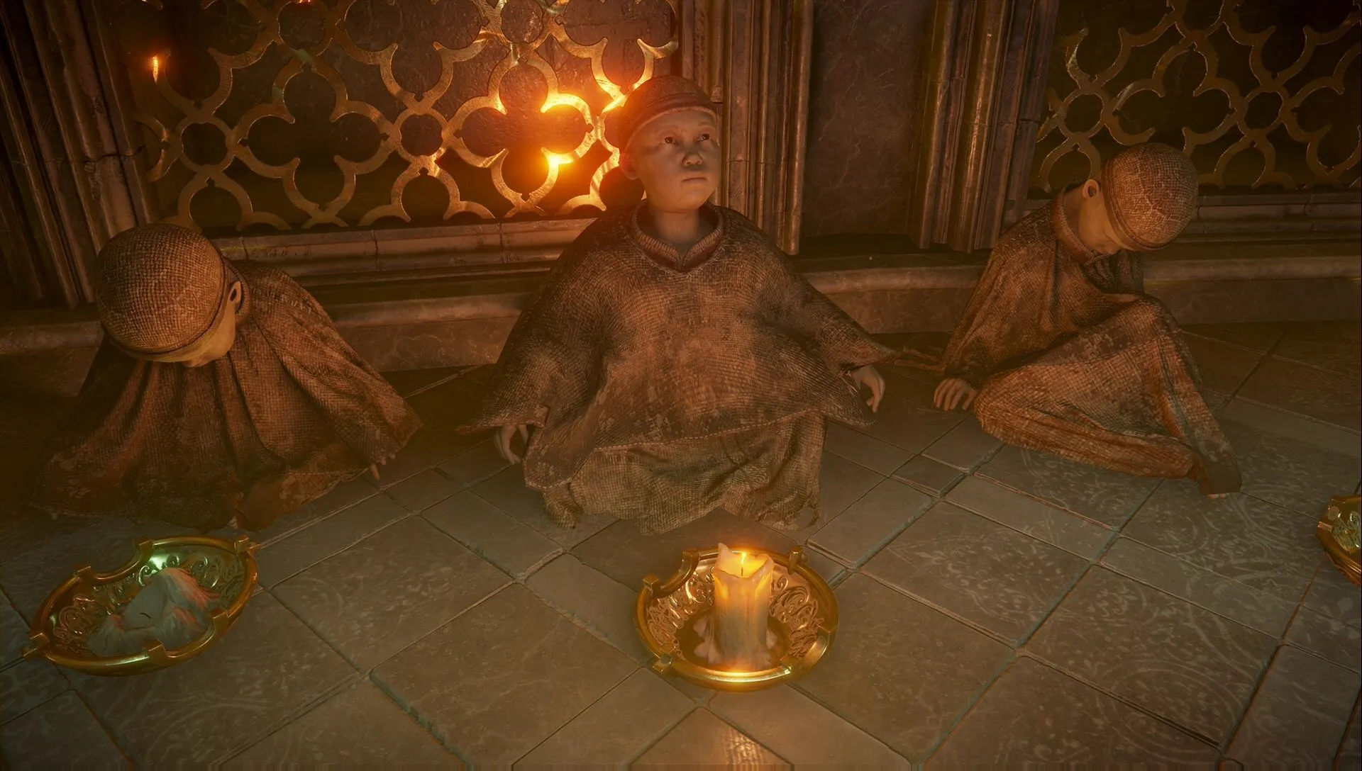 جمجمههای قربانیان یکایک به دنبال یافتن دیدگان شکافته میشود درحالیکه نخستین شکارچیان راه خود را بهسوی جسد کوز باز میکنند. در اینجاست که آنها مرتکب بزرگترین کفر خود میشوند. آسانسوری که به تالار تحقیقات کلیسای شفابخش باز میشود سه مجسمه را به تصویر کشیده که بر فراز سر کودکی قرار گرفتهاند و آن را وارسی میکنند. مجسمه میانی با برتن داشتن ردا و کلاهی مشابه رئیس دانشکده بهوضوح ترسیمگر استاد ویلم است. گرمن و ماریا متوجه شدند که کوز مرده حامله بوده و جنین زاده نشده او همچنان دستنخورده باقیمانده است. قانون بسیار مهمی در جهان بلادبورن وجود دارد که در آن اگر فردی در Waking World بمیرد، احتمال دارد ضمیرش در Dreamlands باقی بماند. این مضمونی است که بارهاوبارها پیش کشیده میشود و مدرک گواه بر درستی آن وجود جسد میکولاش در Waking World است.