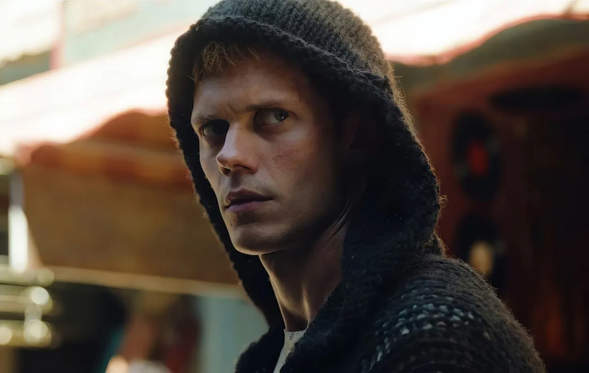 این ایدهی آشنا نیازی به خلق یک جهان منحصربهفرد نداشت اما سازندگان تلاش کردهاند تا مشابه «جان ویک» و «وی مثل وندتا»، به دنیاسازی (Worldbuilding) هم بها دهند که متاسفانه جواب نمیدهد. فارغ از اینکه محدودیت بودجه به موریتز مور اجازهی بلندپروازی نداده است، جهانِ به اصطلاح دیستوپیاییِ «پسر جهان را میکشد» هیچ ویژگی خاصی ندارد که آن را از دنیای واقعی ما متمایز کند؛ به جز چند لانگ شات که محصول جلوههای ویژه هستند و ماسکِ جون 27 (جسیکا راث) که ظاهرا افکارش را روی نمایشگر مینویسد، فیلم از جنبهی طراحی لباس و لوکیشنها، کاملا عادی است. در «جان ویک»، هتل کانتیننتال به تنهایی یک عنصر جذاب بود یا در «وی مثل وندتا»، عناصر سیاسی به حدی پررنگ بودند که اکشن را به حاشیه میراندند و فضای خفقانآور «1984» جورج اورول را یادآور میشدند، در فیلم موریتز مور اما این جهان بههیچوجه کنجکاوی مخاطب را برنمیانگیزد.
