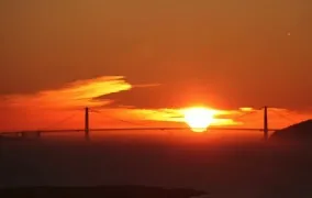 تصویر نجومی روز ناسا (۱۱ آذر ۹۴): غروب و درخش سبز خورشید در گولدن گیت