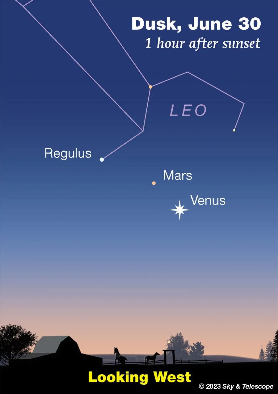 مریخ برای بیش از یک ماه آینده در ارتفاع پایین پس از غروب باقی خواهد ماند و مدت زمان رصد زهره زودتر کاهش مییابد و به سمت غروب خورشید پیش میرود.