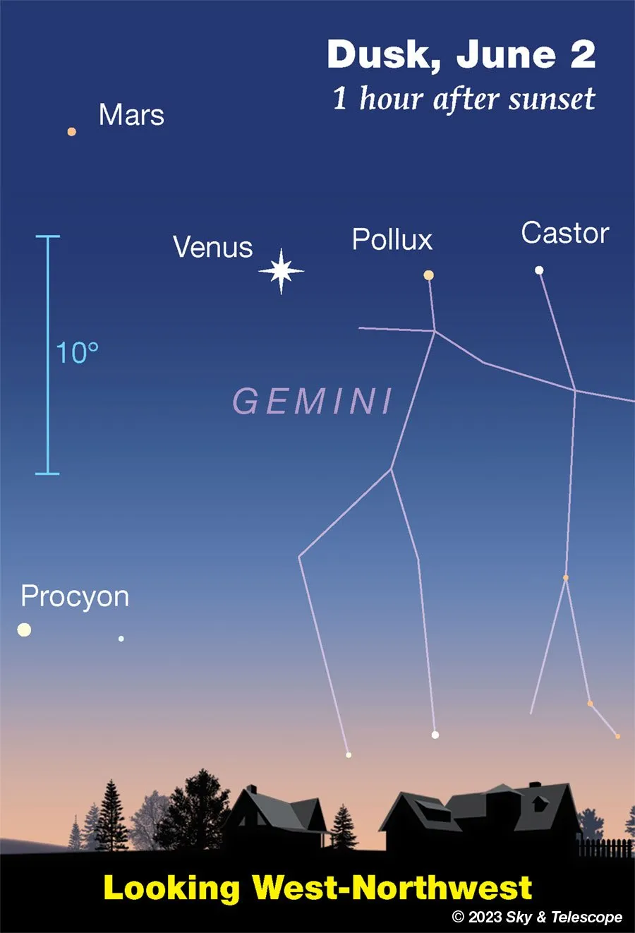 دو هفته پیش مریخ در سمت چپ پولوکس و «کاستور» (Castor) یا «سرپیشین» قرار گرفته بود اما امروز و فردا عصر، نوبت به سیارهی زهره (ناهید) است.