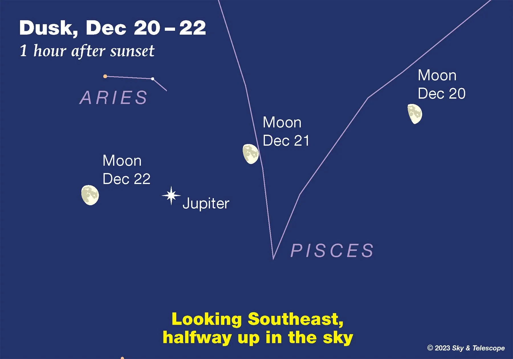 آسمان در هفتهی پایانی آذر 1402 میزبان هلال باریک ماه است و بدین ترتیب فرصت مناسبی برای تماشای آن در کنار برخی از دیگر اجرام آسمان شب مانند مشتری فراهم است.