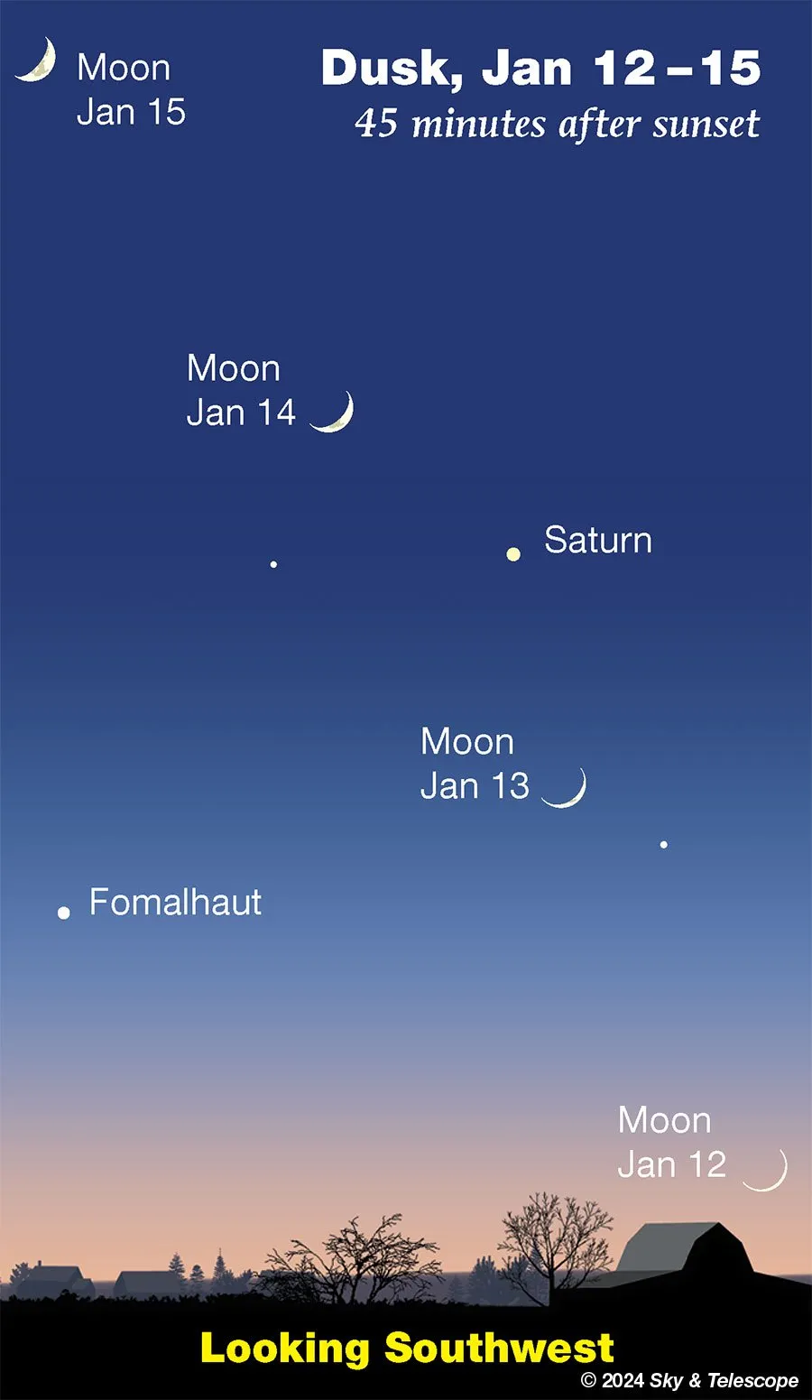 ملاقات هلال ماه با ارباب حلقههای منظومهی شمسی در آسمان پایان دی ۱۴۰۲