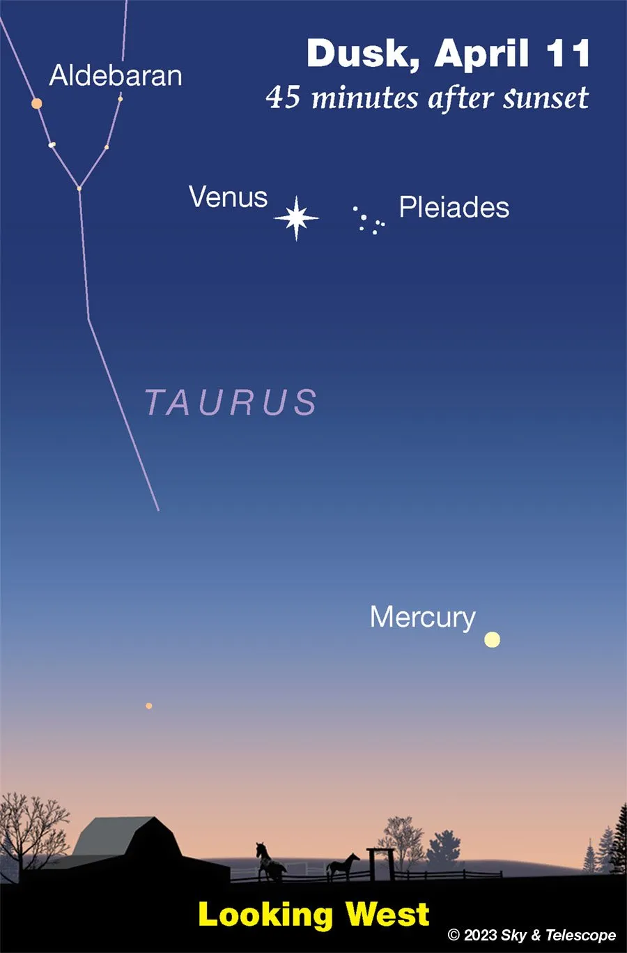 سیارهی ناهید هم در عصر این روز و روز بعد، از 2 درجهای سمت چپ «خوشهی پروین» (Pleiades) میگذرد. از کمی پیش از غروب خورشید، میتوانید این مقارنهی تماشایی را مشاهده کنید.